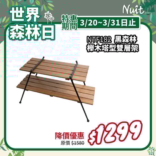 NTF182 努特NUIT 黑森林櫸木塔型雙層架 實木置物架 置物架 收納架 摺疊架 木質層板架 木層架 展示架