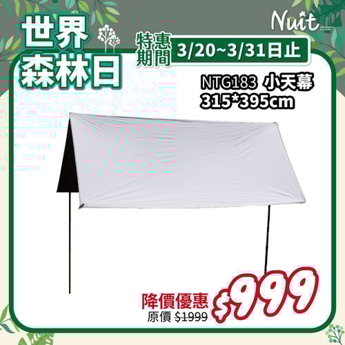【世界森林日 限時特惠 3/20-3/31】NTG184 努特NUIT 攜便 遮光黑膠小天幕 290x300cm 耐水壓 梯形 遮陽天幕小天幕
