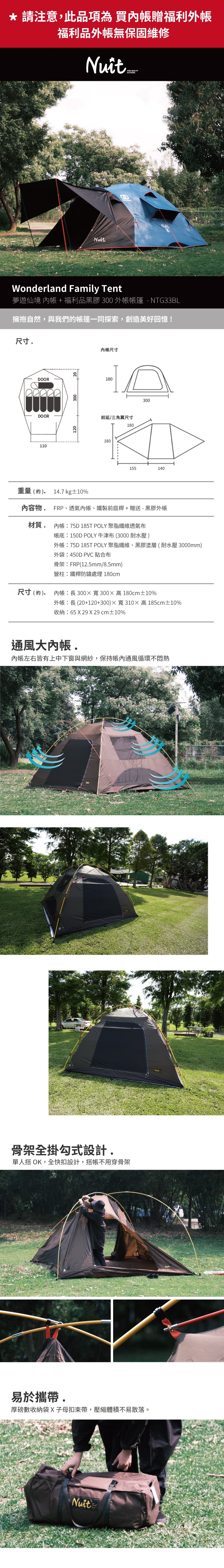 | 商品名稱 | NTG33BL 努特NUIT 夢遊仙境八人黑膠帳蓬 300帳篷 |