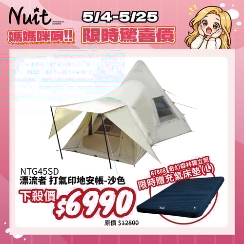 【限時買帳贈充氣床】NTG45 努特NUIT 漂流者-沙色 印地安打氣帳棚充氣帳蓬快速帳篷 八~十人一房一廳帳全封底防蚊蟲防蛇 NTB364 努特 魔幻時光 波浪型獨立筒電動充氣床 L號