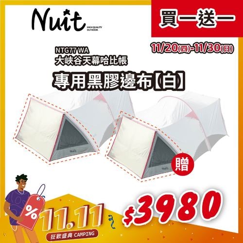 【11月狂歡盛典-11/20-11/30限時買一送一】NTG77WA 努特NUIT 黑膠 大峽谷哈比帳 白色 專用側邊布 單片 連接邊布 延伸邊布 黑膠邊布 遮陽延伸布