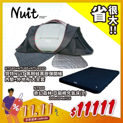 【11月狂歡盛典限時優惠】【黑眼蛙拋帳+內外墊+獨立筒充氣床 優惠組】NTG85+NTU85+NTB08 努特NUIT黑眼蛙2 (XL版) 黑膠彈開帳 速立帳蓬 拋帳 可放充氣床 懶人帳棚彈開帳篷 六人帳篷 快搭帳 自動帳蓬