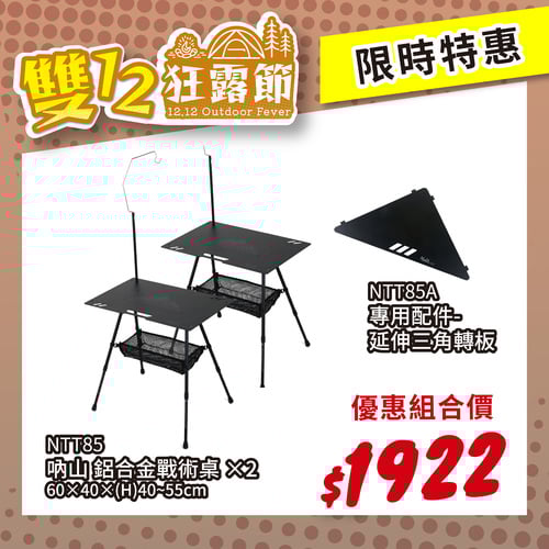 【雙12狂露節-限時特惠】 NTT85 + NTT85A 努特NUIT 吶山 鋁合金戰術桌x2 + 延伸三角轉接板 手提戰術桌 戶外戰術桌 輕量戰術桌版 黑化 可調高度 附燈桿桌下網