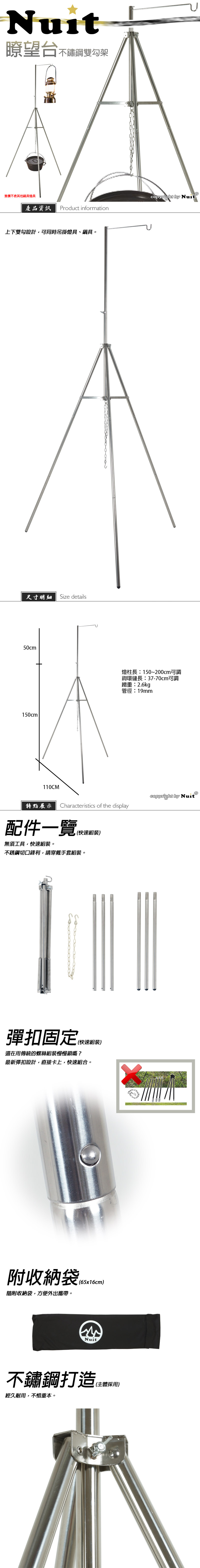 NTW32 努特NUIT 瞭望台不鏽鋼雙勾燈架 三角吊鍋架 不鏽鋼燈架三角鍋架