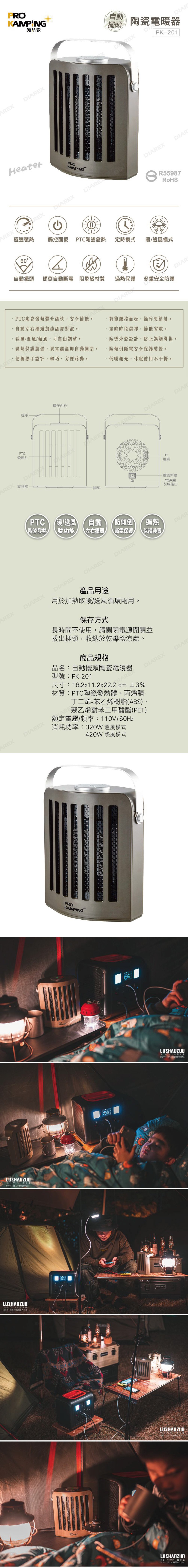 | 商品名稱 | Pro Kamping領航家擺頭定時陶瓷電暖器 |
