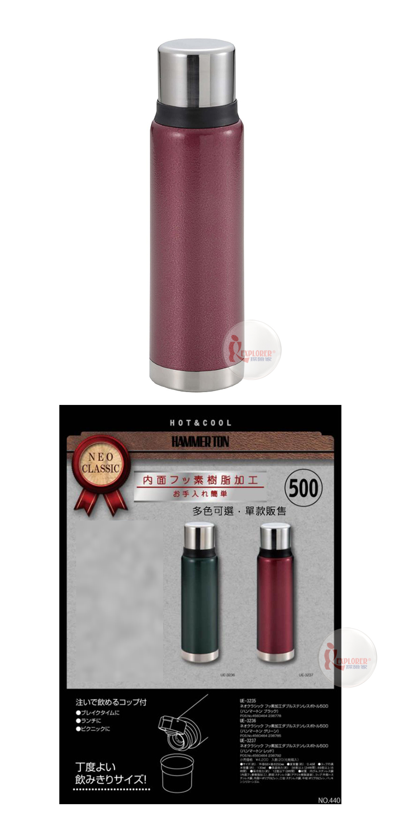 UE-3237 CAPTAIN STAG 日本鹿牌不鏽鋼真空斷熱保溫瓶500ML(紅) 保溫杯保溫壺
