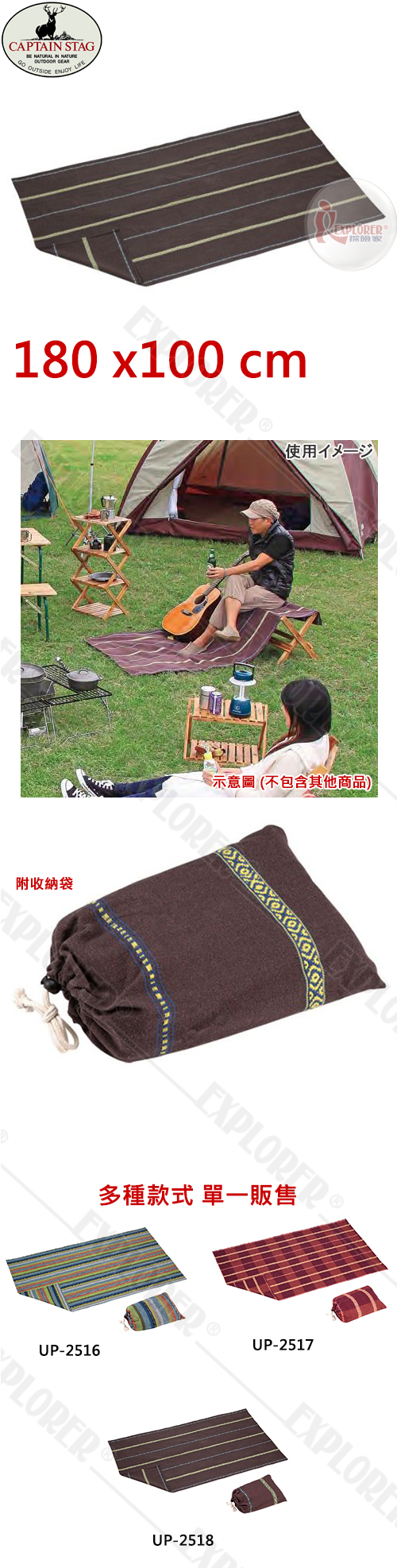 UP-2518 CAPTAIN STAG 日本鹿牌野餐墊(深棕) 180*100 睡墊 野餐毯 桌布 桌巾 帳篷內毯子