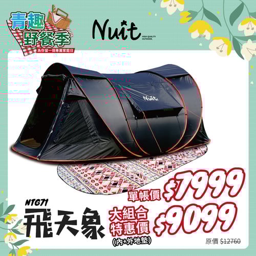 【青趣野餐季 飛天象拋帳+內外墊優惠組】NTG71努特NUIT 飛天象 黑膠彈開速立帳蓬 黑膠彈開帳 速立帳蓬 拋帳 可放XL充氣床 懶人彈開帳篷六人快搭帳