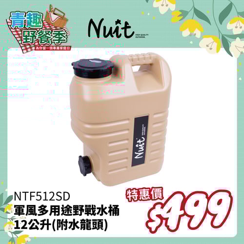 【青趣野餐季-限時特惠】NTF512SD 努特NUIT 軍風多用途野戰水桶 12L 沙色 露營硬式水筒 防災消防水箱水袋停水必備泡茶山泉水品茗急難救災
