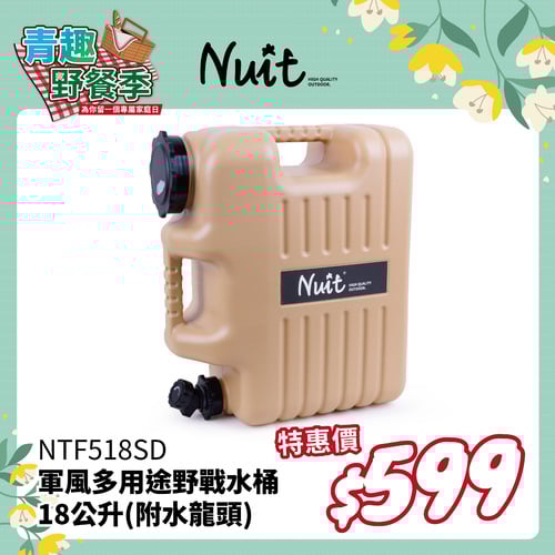 【青趣野餐季-限時特惠】NTF518SD 努特NUIT 軍風多用途野戰水桶 18L 沙色 露營硬式水筒 防災消防水箱水袋停水必備泡茶山泉水品茗急難救災