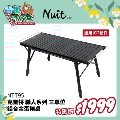 【青趣野餐季-限時特惠】NTT95 努特NUIT 克雷特 三單位鋁合金蛋捲桌88x38.5高度可調 適用IGT配件一單位露營桌摺疊桌折疊桌餐桌