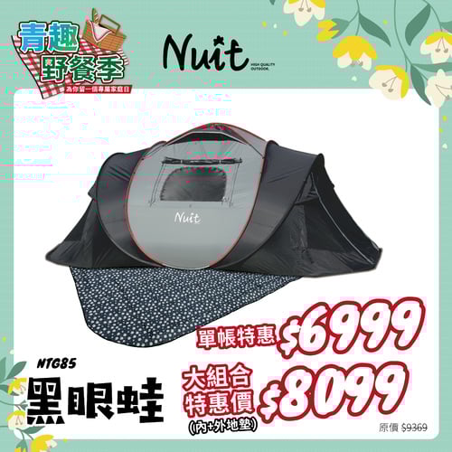 【青趣野餐季 黑眼蛙拋帳+內外墊優惠組】NTG85 努特NUIT黑眼蛙2 (XL版) 黑膠彈開帳 速立帳蓬 拋帳 可放充氣床 懶人帳棚彈開帳篷 六人帳篷 快搭帳 自動帳蓬