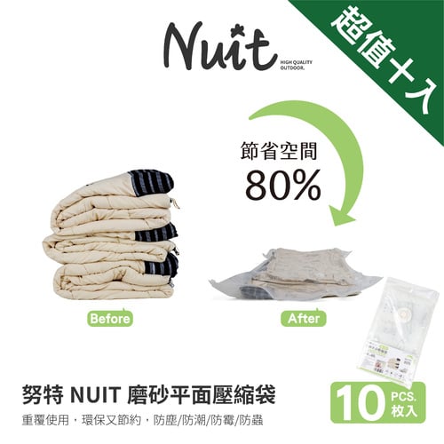 【限時特惠-平面磨砂超值十入裝-5個大號+5個中號】NTE5810070 NTE588060 努特NUIT 天際無限 磨砂平面 壓縮袋100x70cm 80x60cm平面款 真空壓縮收納 多用途壓縮袋 收納袋 防塵 防霉 防潮 衣物壓縮 棉被 單入