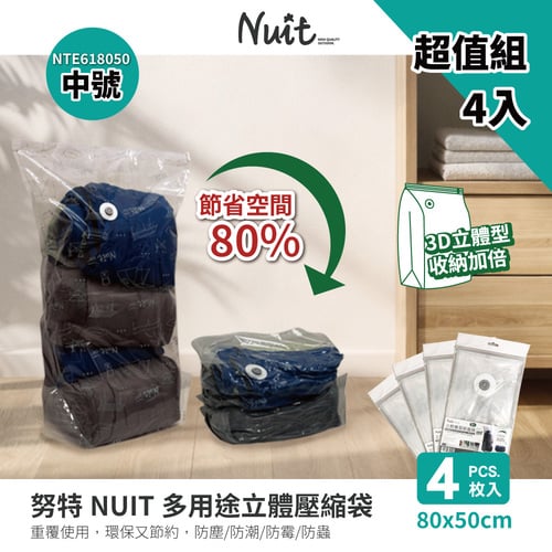 【限時特惠超值四入裝-中號】NTE618050 努特NUIT 天際無限 高品質立體壓縮袋80x50cm 真空收納 立體 3D加大 多用途壓縮袋 收納袋 防塵 防霉 防潮 衣物壓縮 棉被
