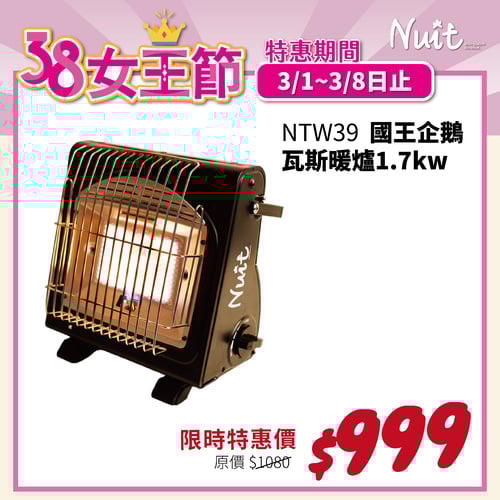 【38女王節 3/1-3/8 快閃特惠】NTW39 努特NUIT 國王企鵝瓦斯暖爐 1.7kW 不插電 卡式瓦斯罐 便攜式 攜帶式 電子點火 取暖烤爐