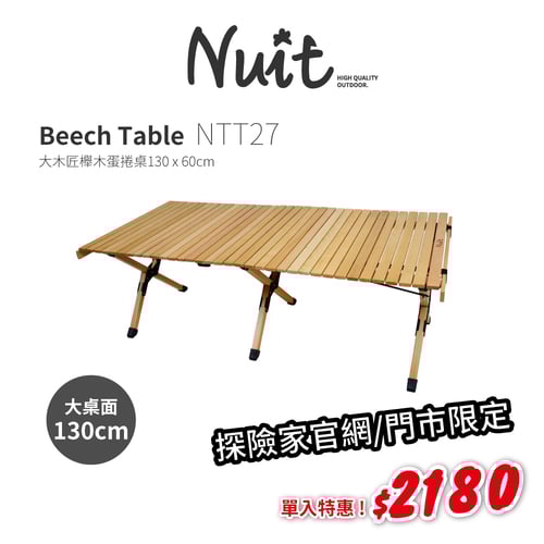 NTT28 努特NUIT 木匠櫸木蛋捲桌 90 x 60 快速可搭起 鋁捲桌 咖啡桌 木捲桌 櫸木桌 微福利品