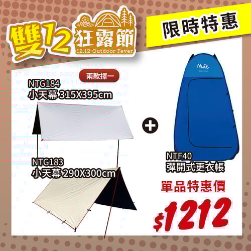 【雙12狂露節-組合A+B】 NTG184 / NTG183 小天幕 二選一 +NTF40 努特NUIT 彈開式更衣帳 附收納袋 內層銀底防紫外線 衛浴帳篷廁所帳篷洗澡帳篷露營浮潛水婚紗外拍更衣室外景出團