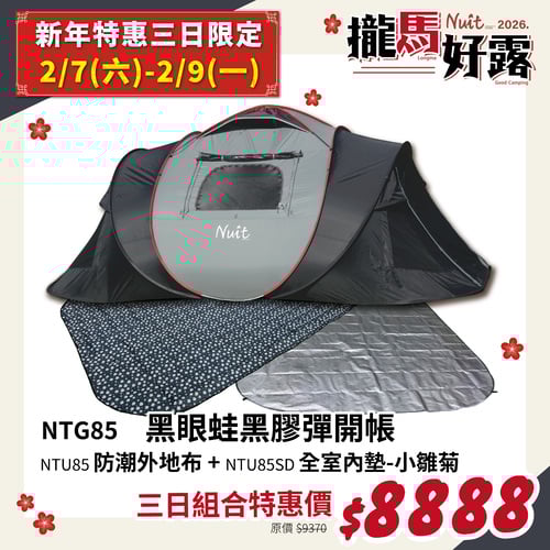 【2/7-2/9新年特惠_三日限定】【黑眼蛙拋帳+內外墊優惠組】NTG85 努特NUIT黑眼蛙2 (XL版) 黑膠彈開帳 速立帳蓬 拋帳 可放充氣床 懶人帳棚彈開帳篷 六人帳篷 快搭帳 自動帳蓬