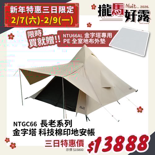【2/7-2/9新年特惠_三日限定【買帳篷限時贈外地墊】NTGC66 努特NUIT 長老系列 金字塔 科技棉印地安帳 400x400xH280 印地安帳 帳篷 帳棚 帳蓬 棉帳