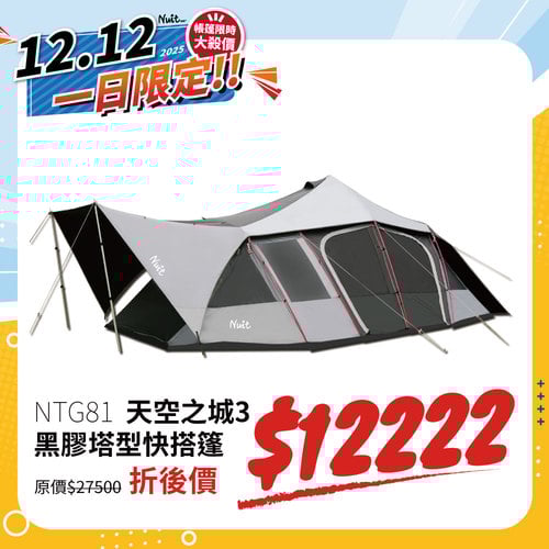 【1212一日下殺特惠】NTG81 努特NUIT 天空之城3 黑膠塔型家庭帳篷 快搭帳棚 黑膠帳別墅帳蓬隧道帳篷 頂級耐水壓可放XL充氣床