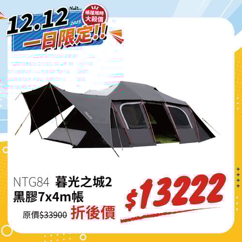 【1212一日下殺特惠】NTG84 努特NUIT 暮光之城2 黑膠7x4m塔型家庭帳篷 快搭帳棚 黑膠帳別墅帳蓬隧道帳篷 頂級耐水壓可放XL充氣床
