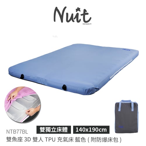 NTB77BL 努特NUIT 雙魚座 3D雙人 TPU充氣床墊 藍色 10公分 雙獨立床體 環島 旅遊 露營 居家 機車