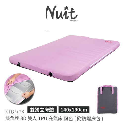 NTB77PK 努特NUIT 雙魚座 3D雙人 TPU充氣床墊 粉色 10公分 雙獨立床體 環島 旅遊 露營 居家 機車