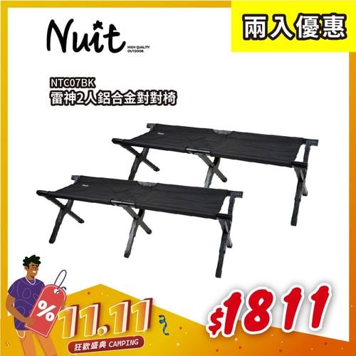 【11月狂歡盛典限時優惠-兩入優惠】NTC07BK 努特NUIT 雷神2人鋁合金對對椅 曜石黑 情人椅 雙人椅 摺疊椅 折合椅 折疊椅