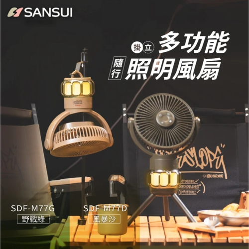 SDF-M77 SANSUI山水充電式隨行風扇 10000MAh 多功能照明風扇 露營風扇 無線風扇 小風扇 充電式風扇 SDF-M77G野戰綠 SDF-M77D 風暴沙