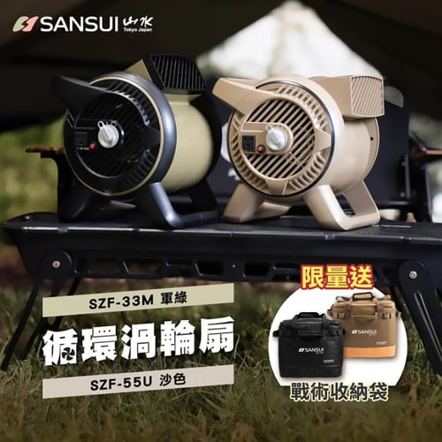 SANSUI山水 疾風渦輪噴射循環扇戶外疾風循環渦輪扇 沙色 綠色 (附收納袋) SZF-55U SZF-33M