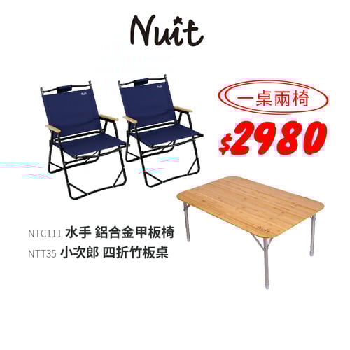 【11月狂歡盛典限時優惠】NTT27+NTC91WDNA 努特NUIT 大木匠櫸木蛋捲桌 + 乾燥撤收鋁合金收納椅 二入椅 吶山款