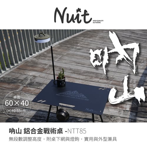 【11月狂歡盛典限時優惠1+1】 NTT85 + NTT85B 努特NUIT 吶山 鋁合金戰術桌 + 單燈架蜘蛛網置物盤 手提戰術桌 戶外戰術桌 輕量戰術桌版 黑化 可調高度 附燈桿桌下網