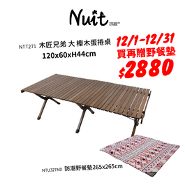 NTT63 努特NUIT 小歐巴 鋁合金蛋捲桌 (木紋) 96x65xH44~71cm旅遊 戶外露營桌 鋁捲桌 炊事桌