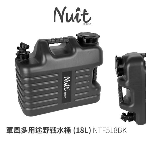 NTF518BK 努特NUIT 軍風多用途野戰水桶 18L 黑色 露營硬式水筒 防災消防水箱水袋停水必備泡茶山泉水品茗急難救災
