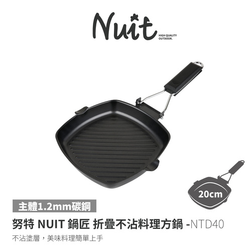 【雙12狂露節-限時12/1-12/15 買一送一】NTD40 努特NUIT 鍋匠 折疊不沾料理方鍋 20cm 台灣製 炒鍋 煎鍋 牛排鍋 摺疊鍋 折疊鍋 不沾平底鍋 單柄鍋 登山 露營