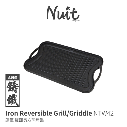 NTW42 努特NUIT 鑄鐵雙面長方煎烤盤 42cm 煎盤 烤盤 炒盤 鐵板燒 日式炒麵 鑄鐵鍋 荷蘭鍋 煎鍋炒鍋 烹調鍋