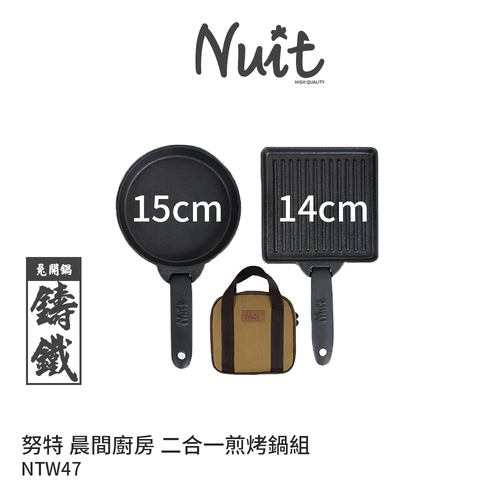 NTW47 努特NUIT 晨間廚房 二合一煎烤鍋組 鑄鐵 荷蘭鍋 煎鍋炒鍋 烹調鍋 平底鍋 燒烤盤 登山 野營 必備