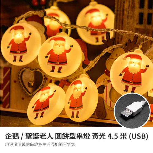EPL02 聖誕老人 企鵝 圓餅型串燈 黃光 4.5米 串燈 (USB供電)線燈 裝飾燈串 LED 浪漫燈串 聖誕 房間佈置 聖誕燈 EPL02A EPL02B EPL02C