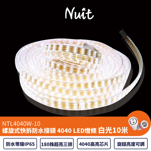 NTL4040W-10 全新IP65螺旋式快拆防水接頭 頂級4040三排極光LED防水燈條 10米白光-180珠/m (送收納盤) 10M LED燈帶LED露營燈限戶外使用