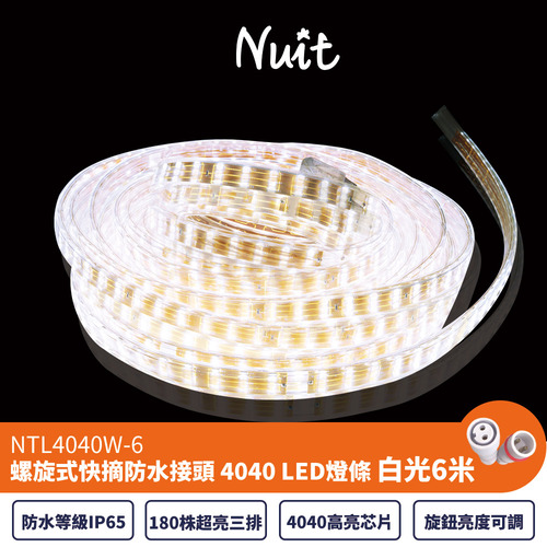 NTL4040W-6 全新IP65螺旋式快拆防水接頭 頂級4040三排極光LED防水燈條 6米白光-180珠/m (送收納盤) 6M LED燈帶LED露營燈限戶外使用