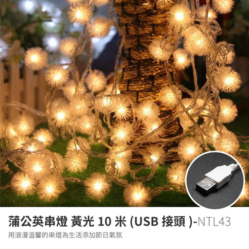 NTL43 蒲公英串燈 黃光 10米 串燈 (USB接頭)線燈 裝飾燈串 LED 浪漫燈串 聖誕 房間佈置 聖誕燈