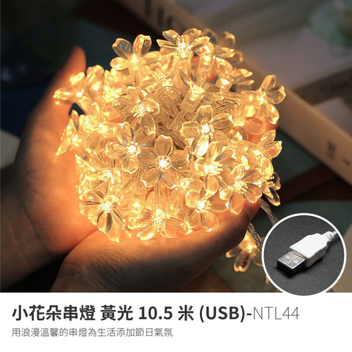 NTL44 小花朵串燈 黃光 10.5米 串燈 (USB供電)線燈 裝飾燈串 LED 浪漫燈串 聖誕 房間佈置 聖誕燈