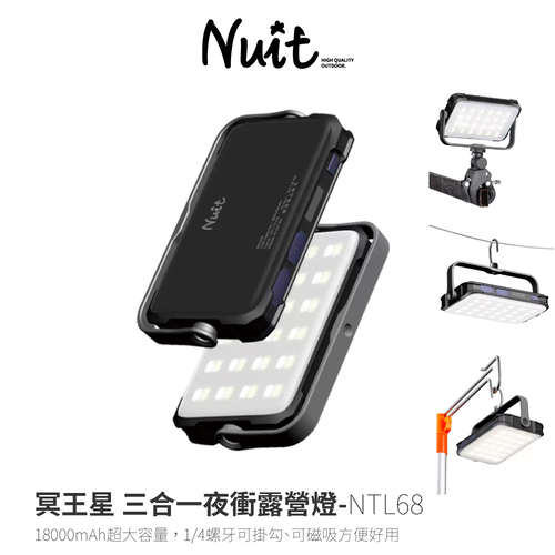 NTL68 努特NUIT 冥王星 三合一夜衝露營燈 專業露營燈行動電源 1500流明 攝影補光燈 USB充電LED燈 野營燈 LED相機補光燈直播補光燈GOPRO補光燈緊急照明1/4補光燈戶外夜衝帳篷