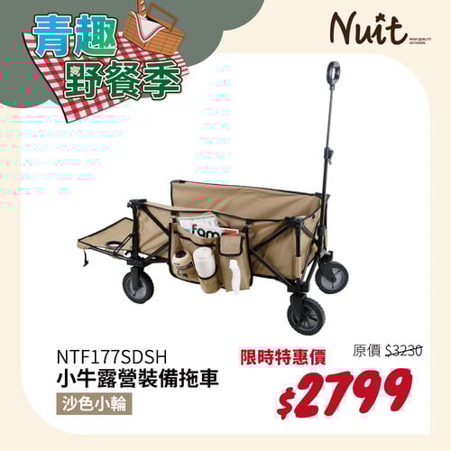 【青趣野餐季-推車優惠】 【沙色小輪】NTF177SDSH 努特NUIT 小牛露營裝備推車3 露營行李推車側掛袋 加長拉桿 折疊式行動手推車 置物車 裝備拖車 親子拖車 行李車(已含包材費)