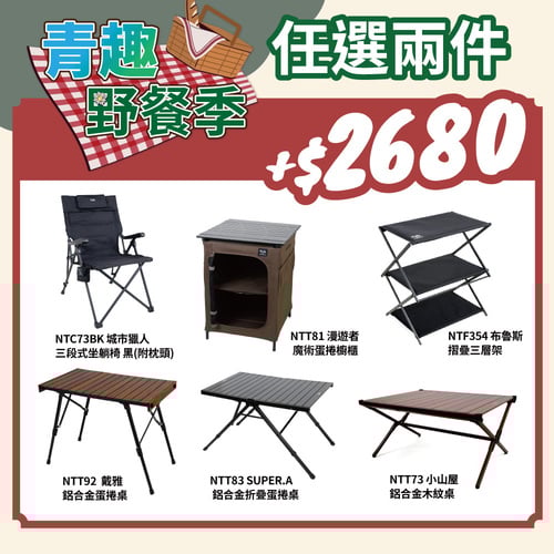 【2026攏馬好露-指定品項兩入優惠$2680】努特NUIT 兩件任選任搭 露營椅 蛋捲桌 三層架 鋁合金 折疊桌 木紋桌 櫥櫃