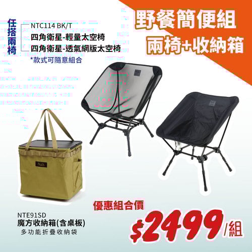 【野餐簡便組1+2椅】NTE91SD/BK 努特NUIT 魔方收納箱(含桌板) 多功能折疊收納袋 可折疊 野餐 NTC114 四角衛星椅 輕量太空椅 兩款椅子任選