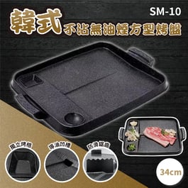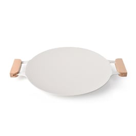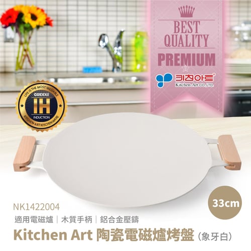 NK1422004 韓國陶瓷平面烤盤33cm 白(IH可用) 韓式不沾燒烤盤 附木手把 BBQ煎烤盤 烤肉必備 不沾烤盤 電磁爐適用