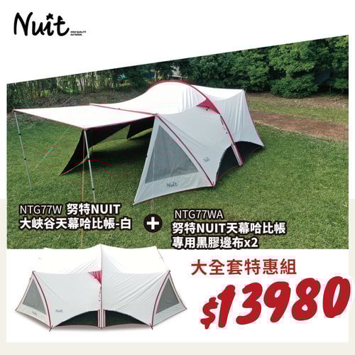 【豪華大全配特惠組】努特NUIT 黑膠 NTG77W+NTG77WA大峽谷哈比帳 白色 天幕帳 + 黑膠側邊布兩塊