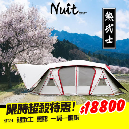 【感謝特惠-再享配件加購優惠】NTG91W 努特NUIT 熊武士 黑膠一房一廳家庭帳六人帳 150D抗撕裂布 鋁合金黑膠隧道帳篷帳蓬帳棚 RV露營 鐵氟龍Telfon耐水壓10000mm