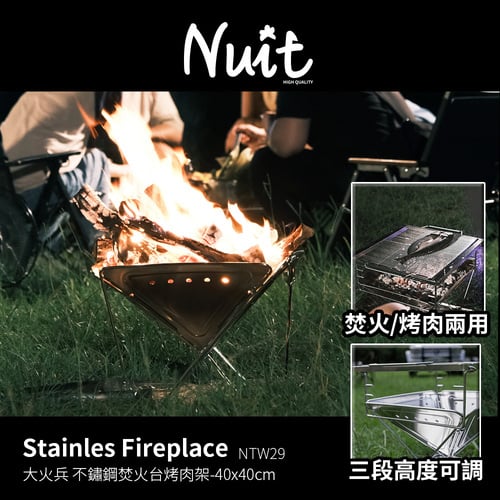 【焚火季-買就贈焚火鐵鉗*1】NTW61 努特NUIT 大火兵XL 不鏽鋼焚火台烤肉架-附烤網 316不鏽鋼烤網 適合中秋烤肉搭配NTW102或荷蘭鍋 鑄鐵鍋燒柴爐育空爐使用